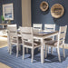 Feel at home with the Brook Bay optional seven-piece leg table set. Crafted with excellence using rubberwood solids and mindy veneers, this set features a two-tone Carbon Gray and Textured White finish and consists of the leg table and six upholstered slat back side chairs. The table has a fixed top that is supported by tapered block legs. A large full extension drawer is on both sides of the table. The drawer is felt lined and has a center divider creating two storage compartments. The chairs offer a seat that is upholstered in 100% polyester Grey Linen fabric. The tapered block legs feature nylon chair glides to protect your flooring. Feel comfortable and elegant at the same time with the Brook Bay optional seven-piece leg table set.