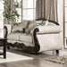 The ultimate in extravagence! Sturdy wood construction upholstered in reflective fabric hosts a decadant wealth of elegant details.