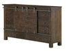 Rustic industrial sophistication makes Pine Hill the perfect bedroom for any setting, from loft to mountain retreat to suburban residence with a warm Rustic Pine finish on pine solids and veneers, offset by metal Aged Iron hardware. Bed options include a knockout poster bed with open canopy, featuring hand-crafted design elements in a fresh form as well as a handsome panel bed showcasing a plank headboard, and optional storage footboard. Case pieces echo the Industrial design with fresh forms highlighted with large Aged Iron bale pulls, and include a unique media Chest with sliding door, reminiscent of an old warehouse or barn, complete with 2 shelves, six drawers and wire management capabilities. The collection is rounded with a sliding door tall chest, an open and closed nightstand option as well as a portrait oval mirror and landscape mirror.