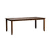 Wow family and friends with the Santa Rosa II rectangular table set. Crafted of rubberwood solids and oak veneers, this set features an antique honey finish and consists of the leg table and four lattice back side chairs. The table has unique walnut inlays on the top and features a 12” butterfly leaf on an easy glide system allowing one to expand or contract effortlessly and is anchored by tapered legs with a softly rounded edge. Sit in comfort with the lattice back side chair that has a padded upholstered seat in a textured linen with tapered legs and nylon chair glides to protect your flooring. With the antique honey finish and the mission design, Santa Rosa II offers the perfect scale for smaller dining areas with a design that translates well into any décor.