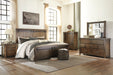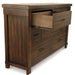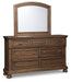 Opposites attract. This dresser and mirror set opens our eyes to how casually rustic styling and an industrial hip vibe make for one happy marriage. Elements that beautify the chunky, linear profile include through-tenon styling, replicated planking, a high-grain finish rich with tonal variation and a staggered drawer design loaded with interest. What’s even more surprising: how such a high-quality designer piece can be so attractively priced.
