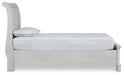 Elegant, timeless furnishings take your bedroom to the next level. Nothing does that better than this full sleigh bed with storage footboard. The antiqued white finish with a wonderful grain texture radiates sophistication, while drawers with dark bronze-tone knobs add a sophisticated touch. Rounding things out, the subtle curve of the headboard keeps the look polished and poised.