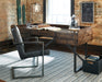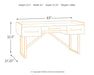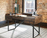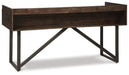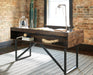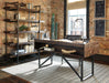 For fans of urban industrial design, this desk steals the show. Its top is crafted with a mix of acacia veneer and wood beautified with an oiled walnut-tone finish. A sleek tubular metal frame and linear, large-scale pulls pull it all together. The cutout shelf on the desk’s front side incorporates added dimension.