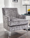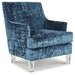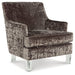 This accent chair with shelter arm styling merges contemporary and traditional styling in the most beautiful way. The combination of polyester crushed velvet upholstery and tapered clear acrylic legs makes for one cool contrast. Combining comfort and fashion-forward design for the modern enthusiast.