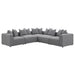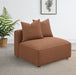 Elevate your modern seating area with this contemporary modular armless chair, upholstered in a soft terracotta trillium polyester blend fabric across its tailored tight back, thick cushion and matching throw pillows. Self-welt trim along the seat edge and backrests offer an elegant finishing touch, along with non-skid grip protectors on the legs. Complete your modular sectional configuration with this additional modular chair.