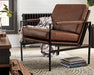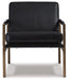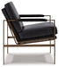 This accent chair has an ultra-modern vibe and indulgent feel. Its metal frame is a chic complement to black leather seating. With its nickel-tone finish and urban industrial style, this accent chair impresses with high-end looks priced to entice.