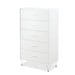 This beautiful Deoss chest of drawers boasts of contemporary style, five drawers with metal drawer handles. Crafted with multi shades of wood, the raw wood texture enhances this dresser's sleek style and the drawers provide plenty of storage space for clothes and more.
