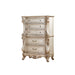 The Gorsedd chest is exclusively designed and filled with romantic spirit. Expertly detailed, the chest is crafted with romantic elements combining Queen Anne legs and ornate floral accents in matching antique finish. Add glamorous French provincial charm with this uniquely designed collection that will make a statement in any bedroom