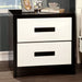 Want to stand out from the rest? This white and ebony night stand delivers a clean and simple look that is sure to capture attention. Recessed pull handles simplify the exterior of the drawers, while still maintaining the functionality of a standard knob or handle.