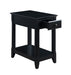 Classic and timeless without being garish. The wooden accent table shows it's elegant silhouette in a attractive finish. A storage drawer under the table top helps your hide odds and ends around the living area, with a bottom shelf for magazine or decorations display. Every living room needs this lovey complement. Use the Bertie Accent table to set a warm, homey wood tone in your home.