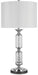 Invite charm and beauty to your home decor as you illuminate your space with this table lamp set. Gleaming chrome-tone metal is accented with stacked crystal bead and clear glass tubes, and crisp white drum shades complete the look. Place this set in your entryway or living room for a dramatic effect.