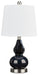 Illuminate your space with the clean and minimalistic design of this glass table lamp set. These accent lamps feature a navy blue glass base with silvertone metal fittings. Crisp white drum shades complete the stunningly simple design.