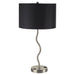 Sleek curves and a circular base makes this contemporary table lamp a chic addition to any room.
