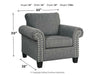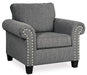 View full detailsA contemporary dream. This chair checks off everything on your list. Designer profile is accentuated with roll arms and pewter-tone finished nailhe...