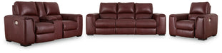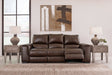 Impressive in scale while keeping an air of refinement, this power reclining package stuns with soft, supple leather match upholstery in walnut. Sink into real leather in the seating areas and inside backs while catering to your comfort with one-touch power reclining and adjustable headrests. Complete with USB charging, this set makes a surefire statement in your contemporary living room.