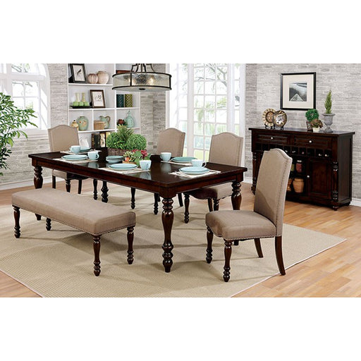 FOA EastHOLCROFT Antique Cherry/Beige Bench, 56"W X 16"D X 18 1/2"H, 35.2lbs. Bring some classy inspiration into your dining room with this warmed toned wo...