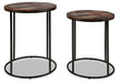 Punctuate your modern style with the quirky-cool sensibility of this accent table set. Tones of brown and pale blue decorate the patchwork pattern top, acting as the perfect perch for sculptures and other accents. Supported by a sleek metal base, this piece sews up the contemporary aesthetic of your space.