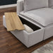 Uniquely extra-plush, this fully-upholstered soft sectional has a few surprises; a removeable woodgrain top on that can serve as an end table and spacious storage bin, and an adjustable arm cushion on the other. Optional ottoman available.