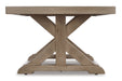 Sporting an easy-on-the-eyes look inspired by driftwood, this coffee table elevates the art of indoor-outdoor living. Beautiful and durable enough for indoor and outdoor use, this high-style/low-maintenance table charms with X-leg farmhouse styling and wows with a thick porcelain table top that’s a natural complement.