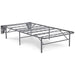 Behold the newest foundation of comfort. This queen mattress riser is an all-in-one support system that takes the place of an ordinary bed frame and box spring. The metal unit sets up quickly and without using any tools, creates a sleep haven with unwavering support. Included brackets attach the riser to a headboard. Even better: the clearance from frame to floor is incredibly spacious and ideal for under-bed storage.