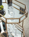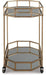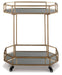 This bar cart entices with high glam appeal that knows how to strike a stylish pose. Mirrored shelves are a trendy complement to the goldtone finished metal. Its open concept frame has plenty of chic panache to accompany drinks and glassware. Convenient caster wheels make transport a breeze.