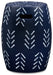 Freshen up your decor with the striking design of this stool. A navy and white pattern plays up the piece’s visual appeal, while hand holds on the sides and a drain opening on top provide modern functionality. Suiting both indoor and outdoor spaces, this stool brings a subtle flourish of style to your contemporary sanctuary.