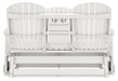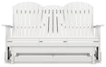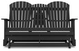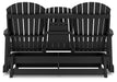 Drift away from everyday worries and into outdoor bliss with this glider loveseat. Dressed in chic black, the Adirondack-inspired design has a classic feel. It weathers sunny summer days and cozy winter nights with durable MEGA TUFF™ HDPE material. A drop-down console with integrated cup holders keeps refreshments and snacks within easy reach. With the console snapped into the back, this loveseat has even more room for enjoying lazy days in the shade.