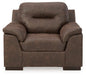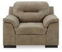 If you love the idea of a luxe look that won't break the bank, make yourself comfortable with this alluring light-hued chair in a neutral shade of pebble brown. Designed to look like the real thing, it's wrapped in a practical faux leather loaded with natural tonal variation and a soft hand feel. Appealing to a contemporary taste, its jumbo stitching, tufted styling and pillow top armrests are indulgently comfortable, with a streamlined look that tops off the high-end aesthetic made for everyday living.