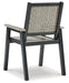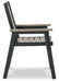 On-trend stylings take to the outdoors with this arm chair. Its two-tone look in driftwood and black has a laid-back luxe appeal. High design meets durability with this outdoor chair's weather-resistant HDPE construction—a stunning display of form and function.