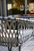 Experience blissful outdoor dining with this outdoor chair set. The simple design is sleek and stylish, while the light gray cushion in Nuvella® high-performance fabric is color-fast and a breeze to clean. Made with lace wicker over a powder coated steel frame, the chairs are stackable to save space when not in use.