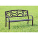 POTTER Black Patio Steel Bench, 50 2/5"L X 20 1/4"W X 34"H, 35.2lbs. Enjoy the outdoors by lounging on this park bench made from durable steel. A unique backrest design distinguishes this bench from the rest. Features: Armrests Slated Seat Steel Black Finish