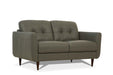 Assembled, Loose Back & Tight Seat Cushion (2+2), Button Tufted •• CONSTRUCTION •• SEAT: Webbing; Inside Frame: Wood, Contrast Tone Stitching, Box Cushion • BACKREST: Button Tufted Cushion • ARMREST: Flared Style, Arm Size: 5 Inches • Wooden Tapered LEG: Dark Walnut Finish; Leg Size: 6 Inches ••• Material: Leather (Solid Pattern) • Pillow NOT Included