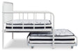 Mixing sleek sophistication and space-saving efficiency, this day bed with trundle is a dream come true. Timeless day bed design exudes a relaxed vibe. Bent steel frame construction enhances the casual look and feel for a piece that plays nicely in any decor, while the rolling trundle serves up extra sleep space or storage with ease. Mattress available, sold separately.