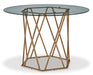 View full detailsThis bold round dining table pairs modern contemporary design with inviting style. Its distinctive hexagonal X-base with a gleaming goldtone finish...