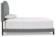 Appreciate the sleek styling and sumptuous comfort of this upholstered bed. Wrapped in a luxurious polyester weave from head to toe, and adorned with elegant button tufting and framed details, this king platform bed sets the scene in your blissful retreat. Rest assured, sturdy roll slats eliminate the need for a foundation/box spring for a well-edited aesthetic.