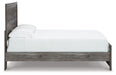 Alluring smoky gray hues create an ambiance that just feels right. This king panel bed has a charming wood-like appeal enriched by neutral tones and a textured look. Its calming presence brings a sense of serenity to your space.