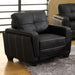 Casual and comfortable, contemporary leatherette chair. Finished in deep black leatherette with contrasting, white stitching, this will bring not only comfort but also style to your home.