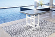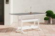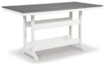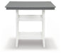 Raise the bar on outdoor living with this 42" dining table. Crafted for style, comfort and MEGA TUFF™ durability, it caters with a standout two-tone look that pairs gorgeous gray and crisp white for twice the interest. The table's counter height design elevates the aesthetic. An umbrella hole lets you throw some shade on your outdoor living space.