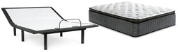 Enjoy endless possibilities for restful sleep on this pillow top mattress and adjustable base set. The plush mattress, which features hyper-cool technology, gives you the best of both worlds: a hybrid innerspring mattress with the pressure relief of cooling gel-infused memory foam, coupled with body contouring pocketed coils for superior support. With the touch of a button, the power base smoothly raises your upper body to relieve pressure points, sit up in bed or sleep in a partially inclined position (helpful for people who snore or experience acid reflux). Convenient USB charging is available for powering up your devices.