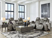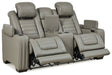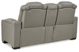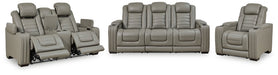 With its fashion-forward sense of style, this power reclining sofa and loveseat package has you covered with high-tech advancements and down-home comfort. For starters, the seating area and armrests are upholstered in real leather for true indulgence where it matters most. Love being pampered? With the touch of a button, experience the pure bliss of an air massage system (with three settings), or chill out with the heated seat element. Distinctive elements of this power set include contemporary waterfall tufting that beautifully goes with the flow, and a zero-gravity mechanism further raising the ottoman for better blood flow.
