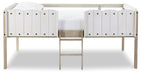 Here’s to a kid-friendly bed that blends in beautifully with modern farmhouse living. This lovely loft bed features a charming white porch fence effect, to help kids create a little home of their own. Coordinating under bed bookcases or rolling storage bins (sold separately) are the perfect accompaniment to this contemporary bedroom suite.