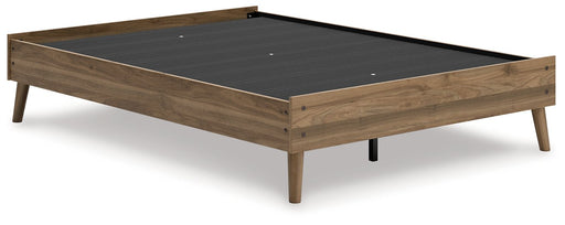 Dare to take minimalism to the max. This full platform bed has a richly relaxed feel thanks to its honey brown finish over replicated wood grain. M...