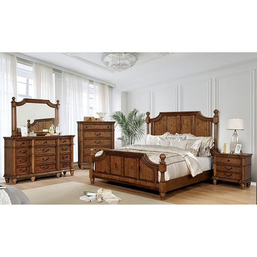 Intricate accents give this English style bedroom set a unique personality. The beds low post design is coupled with ornamental details in the head...