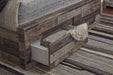 View full detailsModern yet hefty. This full panel bed with storage makes an urban eclectic statement. Seasoned raw wood look merges with the clean lined design we ...