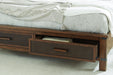 What a fresh interpretation of casual lifestyle design. Inspired by American craftsmanship, but with an elevated sensibility, this bed with storage blends distinctive details such as crossbuck accents and overhead sconces for an easy-living aesthetic. Those who appreciate the beauty of wood will be doubly impressed with the two-tone walnut and burnt umber finish that imparts an added level of refinement.
