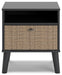 View full detailsPut a retro spin on current trends with this nightstand. Its mixed-material look of matte black and replicated beige cane brings a casually cool fe...