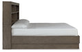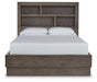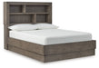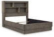 Strike the perfect balance of refined and relaxed with this California king bookcase bed. The headboard is on-trend in a hand-rubbed weathered gray finish, with built-in asymmetrical shelving that allows you to store your favorite reads in sleek style. A tall plinth-style base elevates the piece's modern flair.