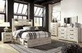 View full detailsWhat a delightful take on rustic industrial style. Whether modern loft or modern farmhouse, this upholstered panel storage bed makes itself at home...