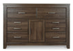 Get the look of posh barn wood without setting foot in a salvage yard. Replicated rough-sawn oak of this dresser has a vintage finish that is reminiscent of a timeworn family heirloom. Warm, rustic and naturally beautiful, it’s just got that ageless appeal. Sleek, mod pulls in a pewter tone are a snappy finishing touch.