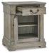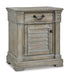 Put a simple twist on your approachable sense of style with this classically charming nightstand. A glazed bisque finish covers the wire-brushed textural surface, with natural wood undertones bringing additional dimension. It’s embellished with blackened iron-tone hardware and louvered accents, infusing this chic piece with an air of traditional elegance.